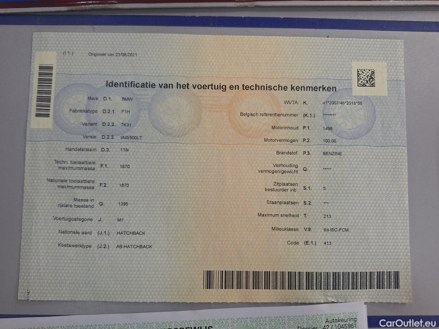 - BMW, 1-serie '19, BMW 1 Reeks Hatch 118iA (100 kW) 5d