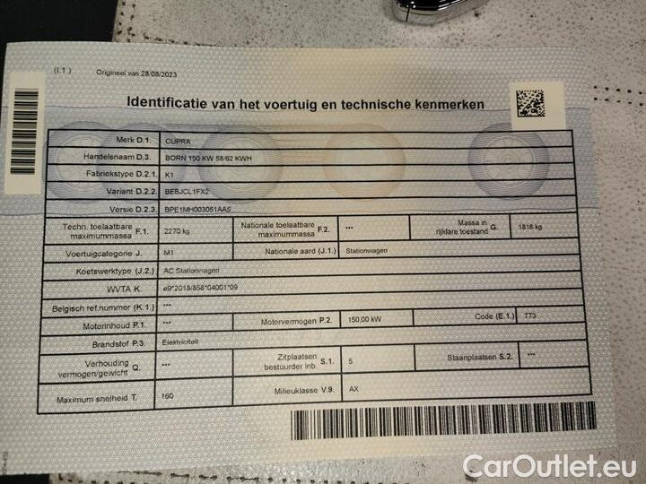 Cupra Born 58kWh 150kW 150kW/204pk 5D/P Auto-1 - WLTP onvolledig -