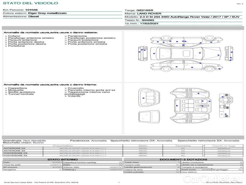 Il veicolo presenta una generica “spia gialla” di anomalia, che potrebbe risolversi con l’utilizzo. Si suggerisce una volta aggiudicata il ritiro con bisarca