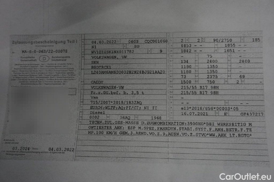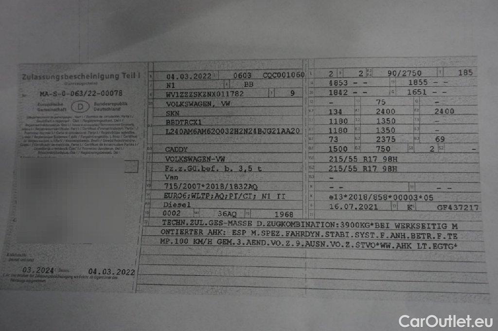 Volkswagen Caddy Nfz Kasten BMT 2.0 TDI 75KW MT5 E6dT -