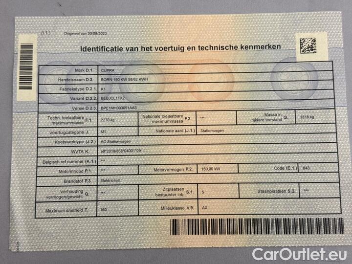 Cupra Born 58kWh 150kW 150kW/204pk 5D/P Auto-1 - WLTP onvolledig -