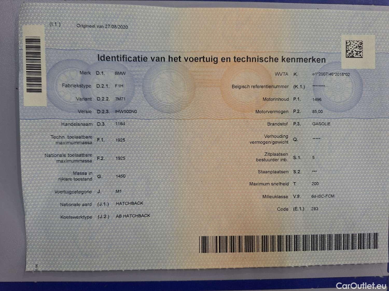 - BMW, 1-serie '19, BMW 1 Reeks Hatch 116d (85 kW) 5d