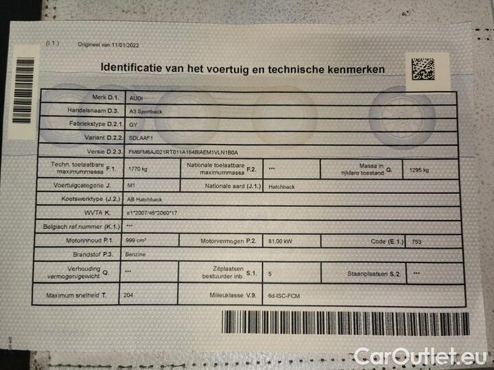 Audi A3 AUDI SPORTBACK - 2020 30 TFSI 110hp Advanced S tronic 5d -