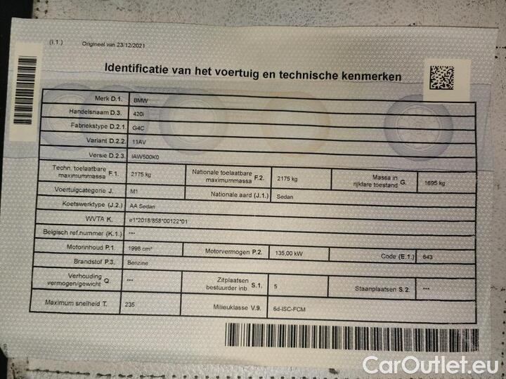 - 4 Reeks Gran Coupé 420i (135 kW) 135kW/184pk 5D/P Auto-8