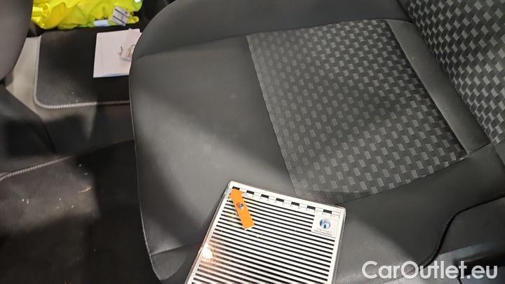 - Fahrersitz Einzelsitz mit mechanischer Lehnenneigungsverstellung, mechanischer Längsverstellung, mechanischer Höhenverstellung, mechanischer Lordosenstütze und mechanischer Sitzflächenneigungsverstellung, Beifahrersitz Sitzbank vorne, Mittelsitz Sitzba