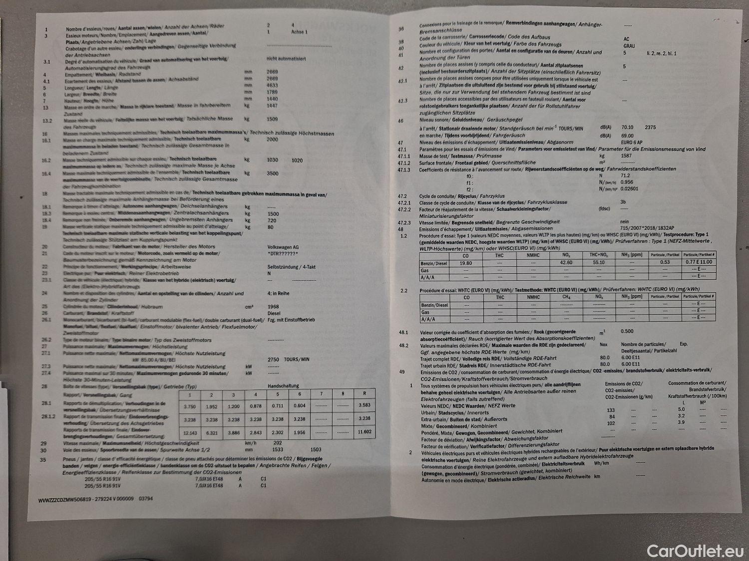 Volkswagen Golf Variant 1.6 TDi SCR Trendline 85kW/115pk 5D/P Man-5 - CO2 onvolledig