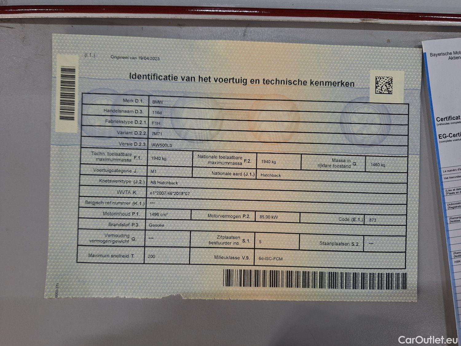- BMW, 1-serie '19, BMW 1 Reeks Hatch 116dA (85 kW) 5d