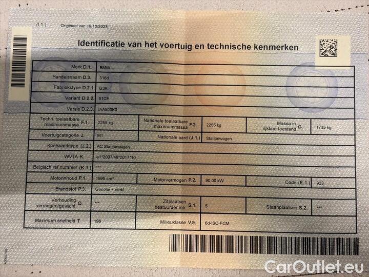 Bmw Serie 3 3 Reeks Touring 316d (90 kW) (Mild Hybrid) 90kW/122pk 5D/P Auto-8 - CO2 onvolledig -