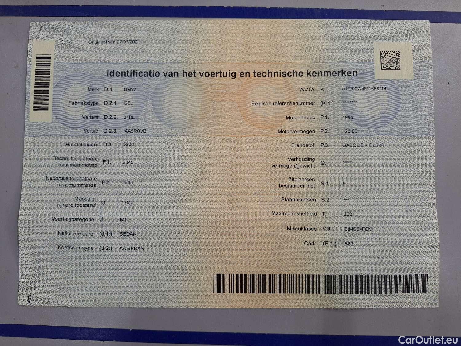 - BMW, 5-serie FL'20, BMW 5 Reeks Berline 520d 120kW Aut. 4d