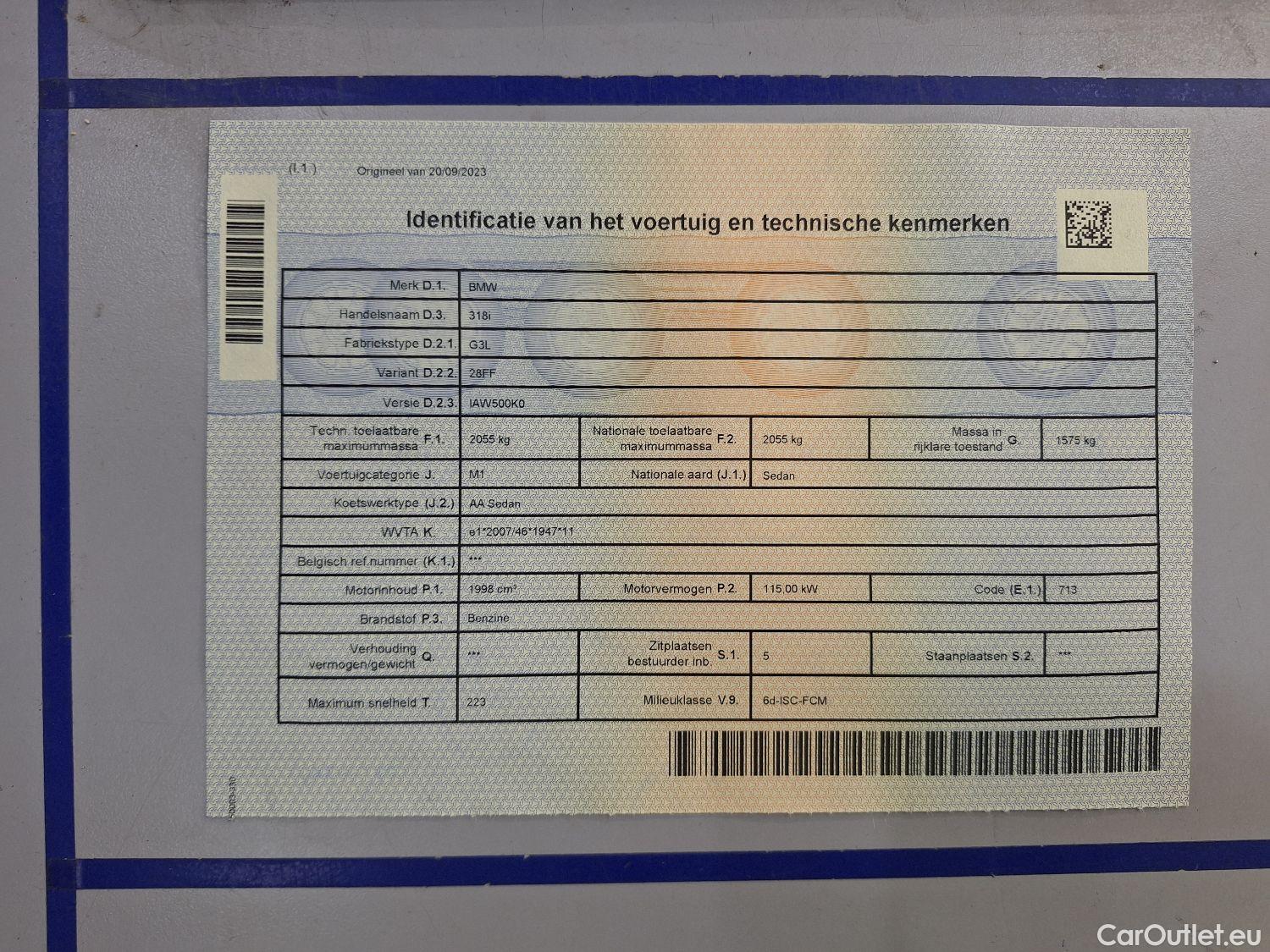 - BMW, 3-serie FL'22, BMW 3 Reeks Berline 318i (115 kW) 4d