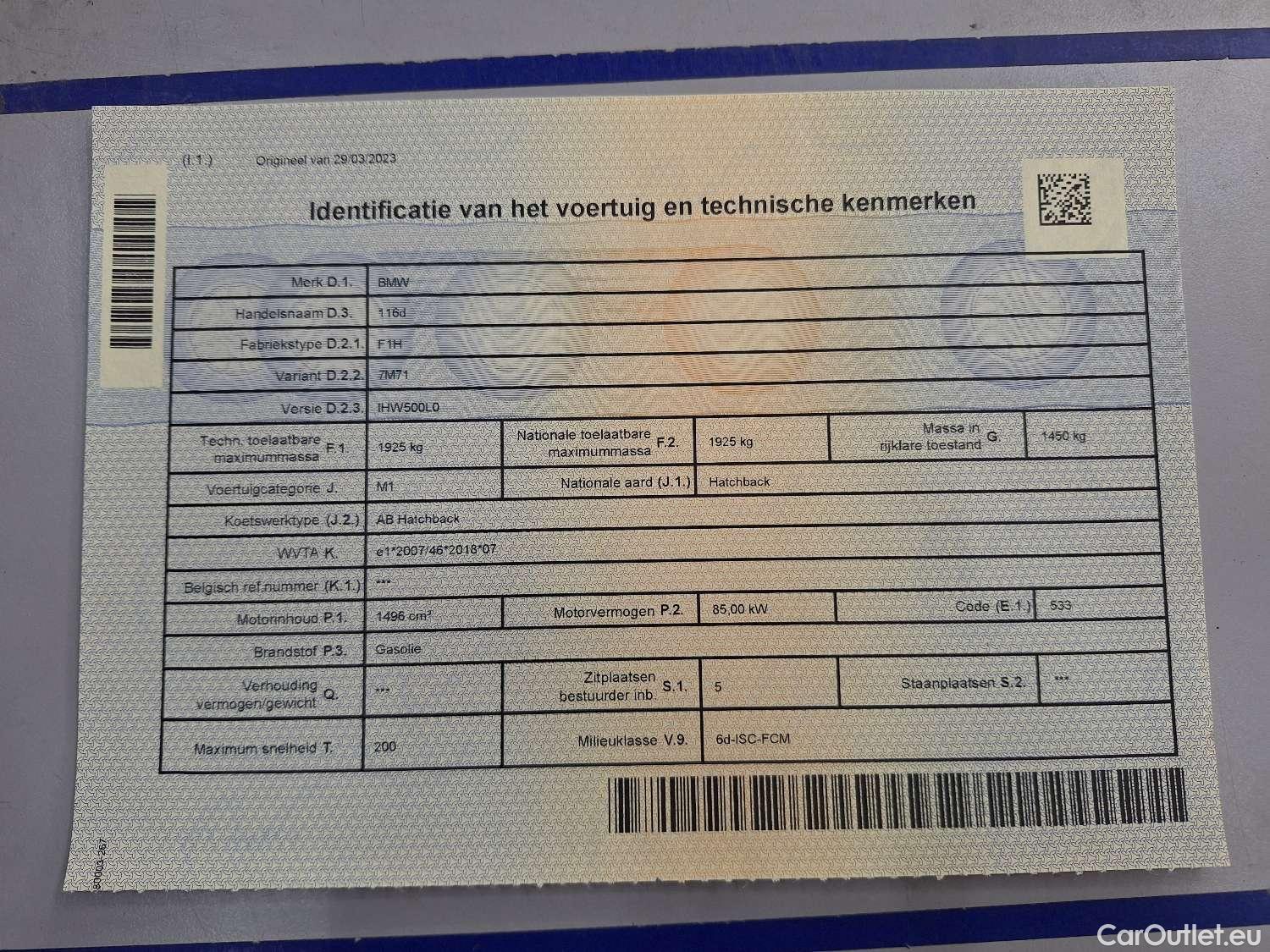 - BMW, 1-serie '19, BMW 1 Reeks Hatch 116d (85 kW) 5d