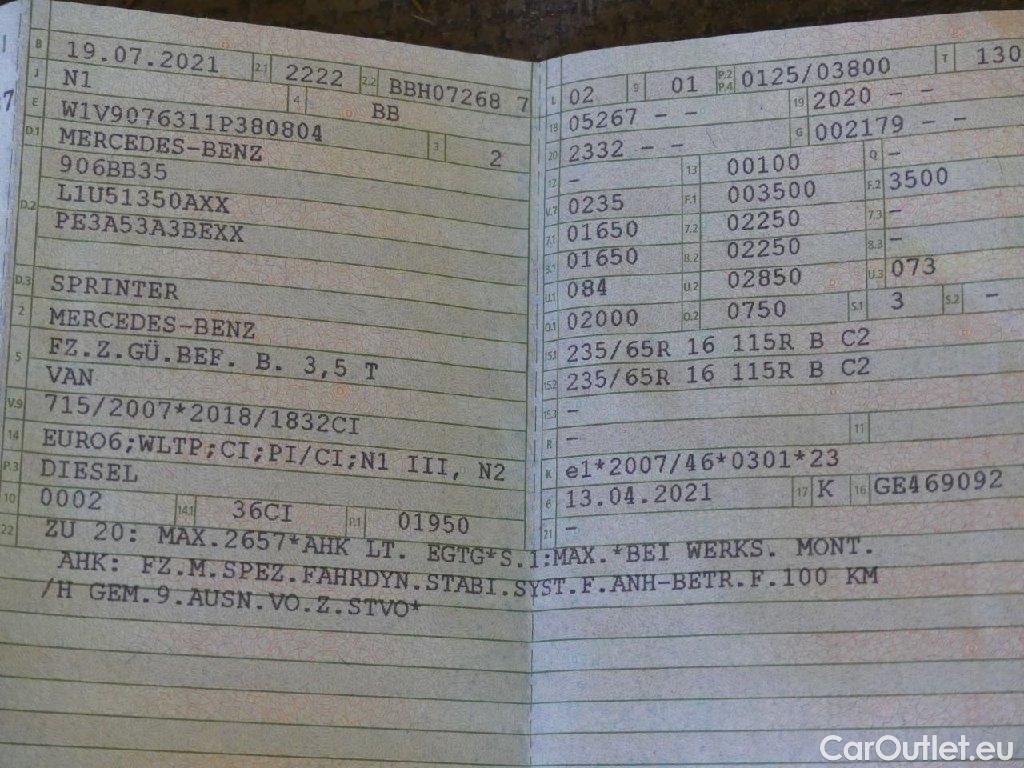 Mercedes Sprinter III Kasten RWD/AWD 311/315/317 CDI RWD L1 (907.631) 2.0 125KW MT6 E6dT