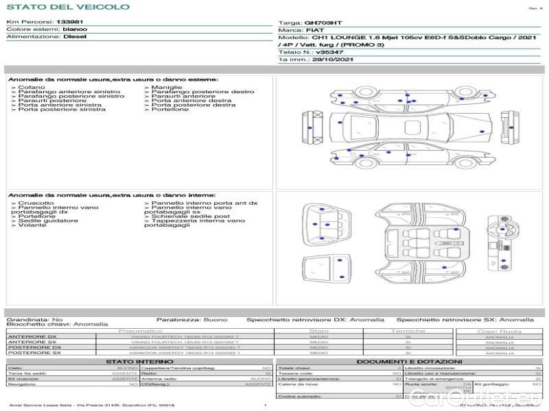 - FIAT DOBLÒ CARGO / 2014 / 4P / VETT. FURGONATA CH1 LOUNGE 1.6 MJET 105CV E6D-F SeS