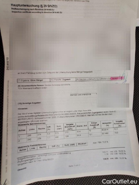 Achtung! Zum Fahrzeug sind uns Vorschäden in einer Gesamthöhe von ca. € netto gemeldet worden.Geschätzte Reparaturkosten von ca. 905 € netto