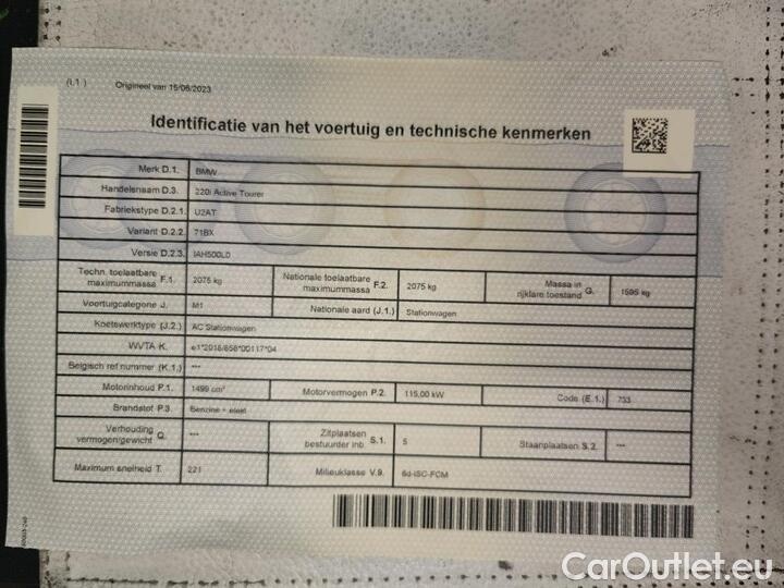 • 2 Reeks Active Tourer 220i (115kW) (Mild Hybrid) 125kW/170pk 5D/P Auto-7 - CO2 indicatief