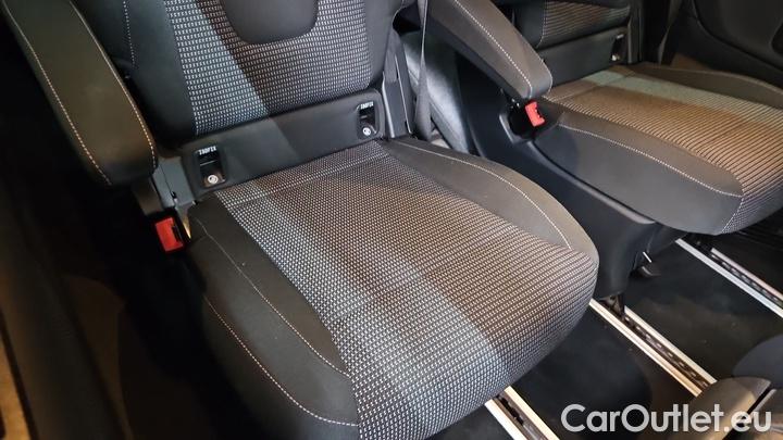- Captain-Sitze hinten mit zwei Sitzplätzen herausnehmbar, symmetr. umlegbar, als Tisch klappbarer Sitz, vor- und hochklappbar, mechanischer Lehnenneigungsverstellung und mechanischer Längsverstellung