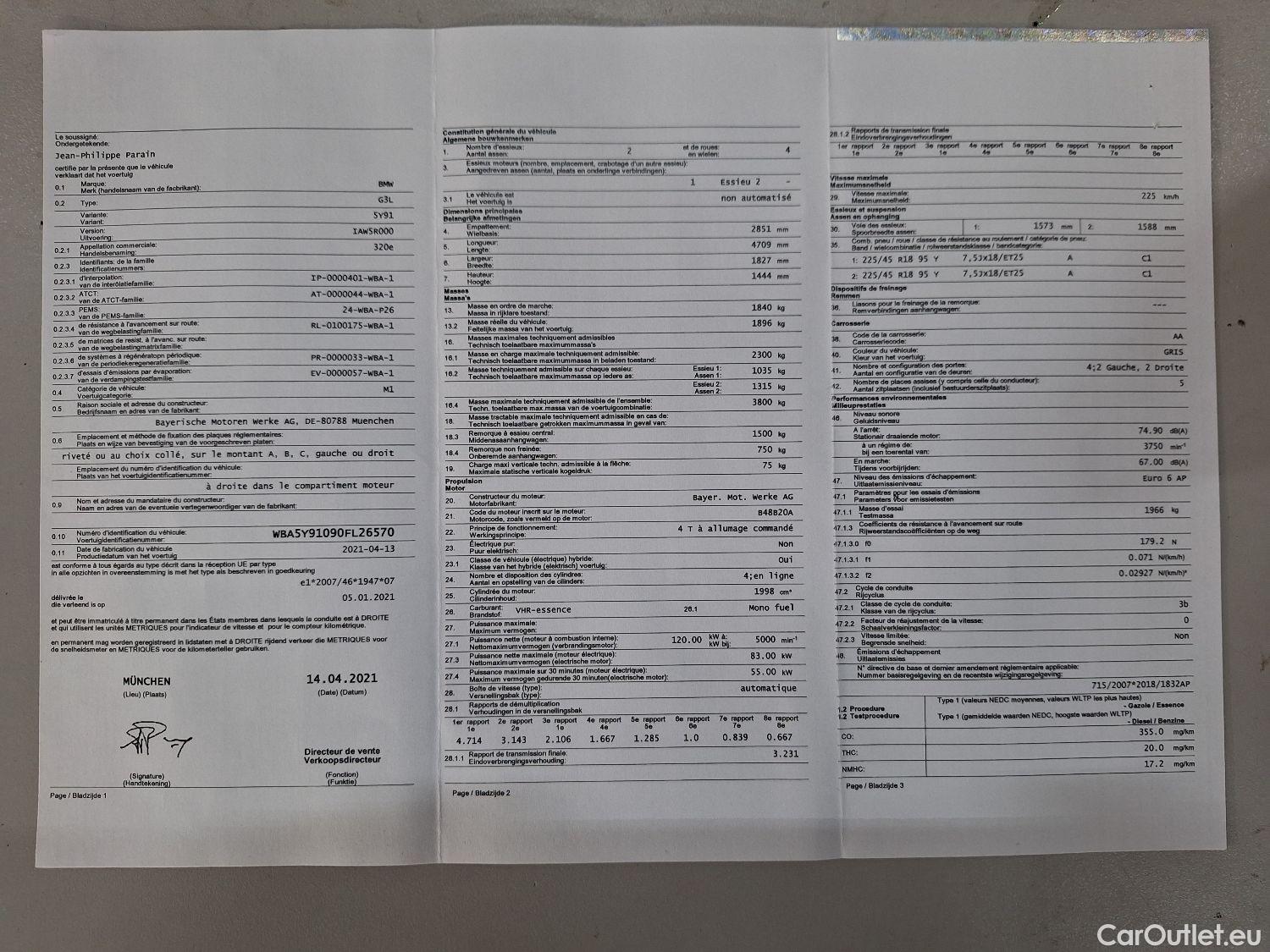 Bmw Serie 3 Baureihe 3 Touring 320 e 2.0 150KW AT8 E6d -