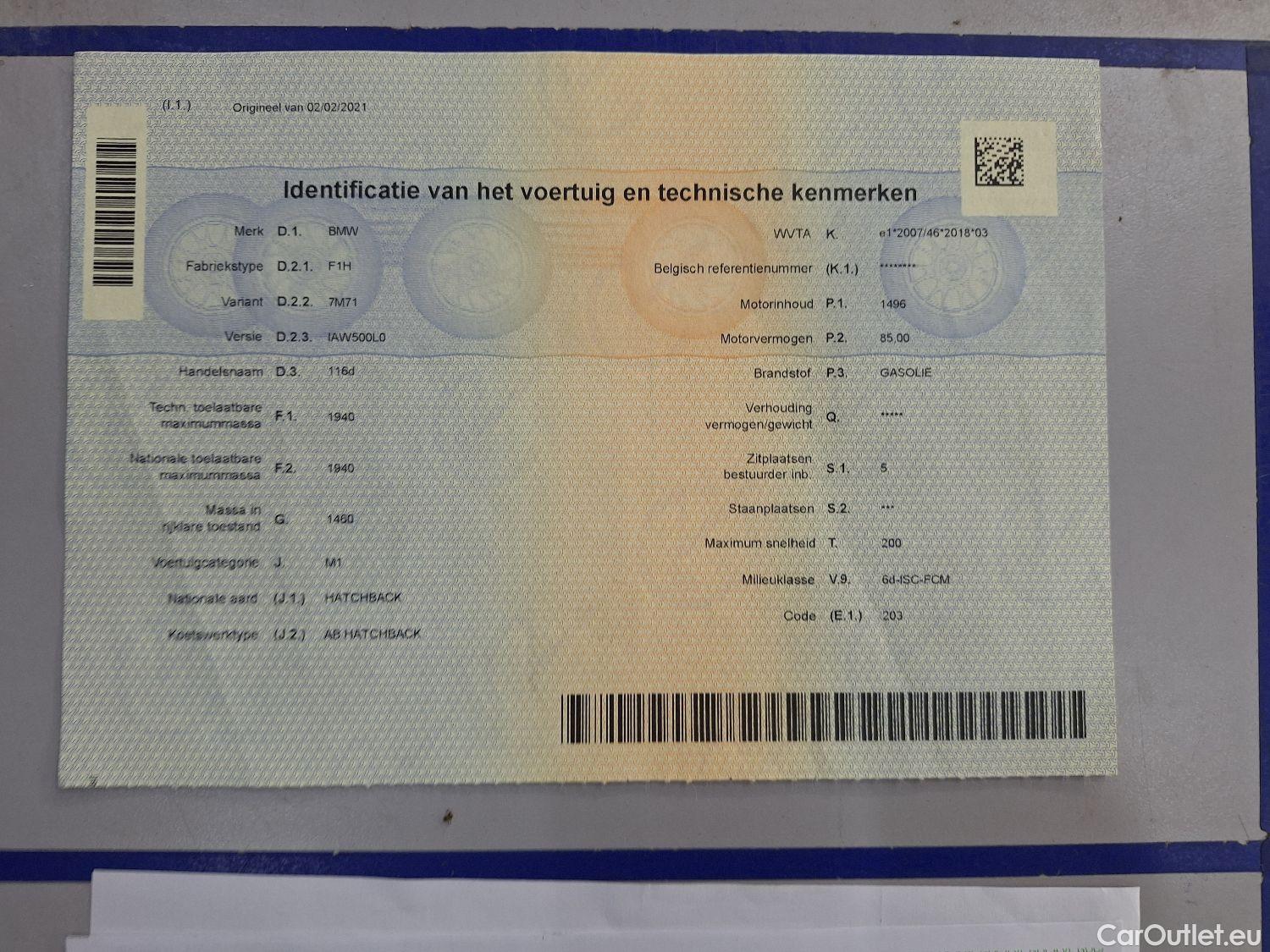- BMW, 1-serie '19, BMW 1 Reeks Hatch 116dA (85 kW) 5d