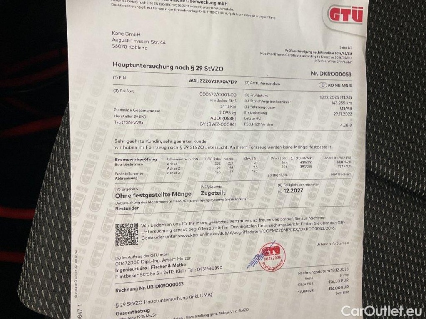 Achtung! Zum Fahrzeug sind uns Vorschäden in einer Gesamthöhe von ca. € 6926.17 netto gemeldet worden.Geschätzte Reparaturkosten von ca. 1905 € netto