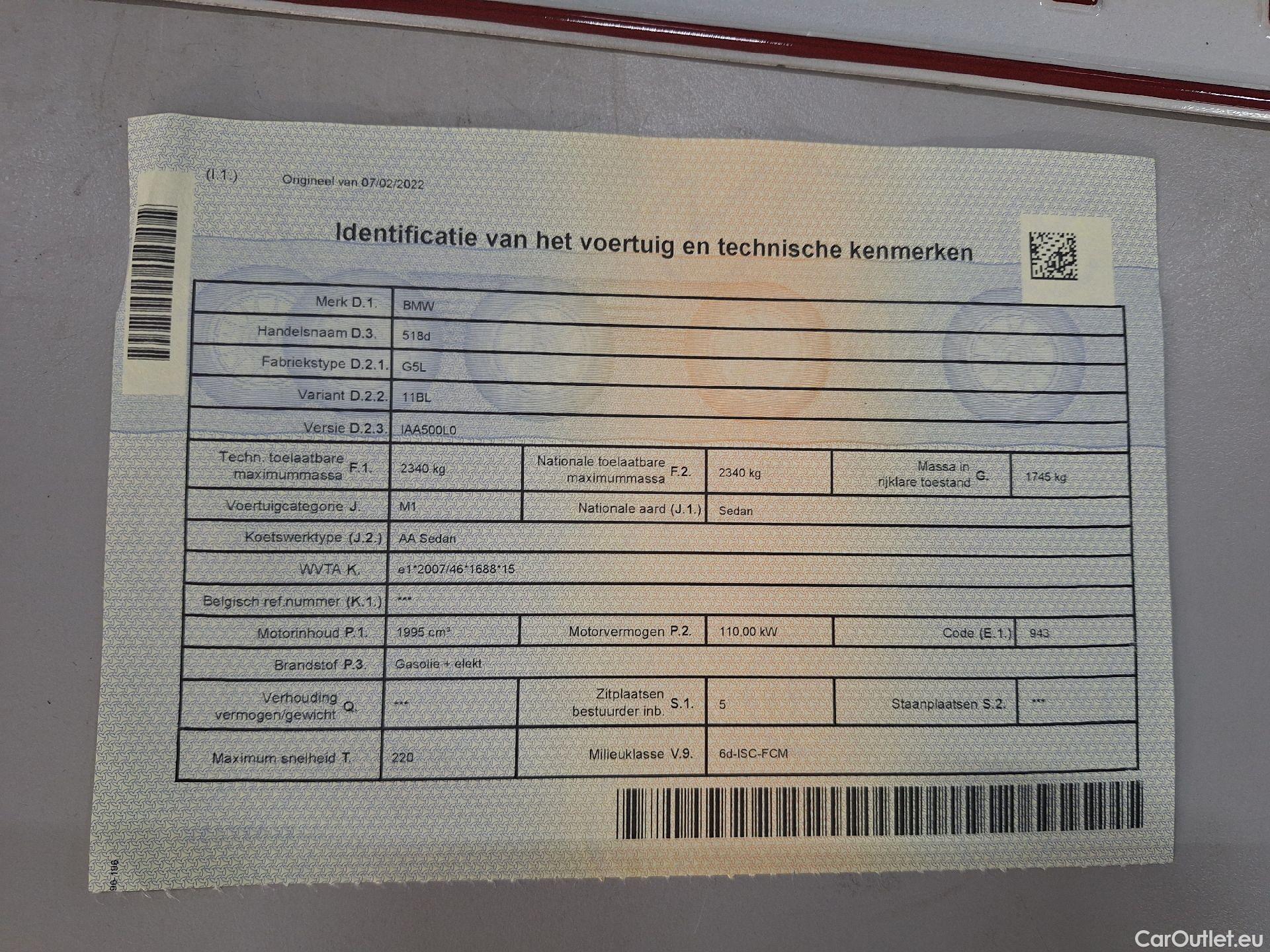 - BMW, 5-serie FL'20, BMW 5 Reeks Berline 518d 110kW Aut. 4d