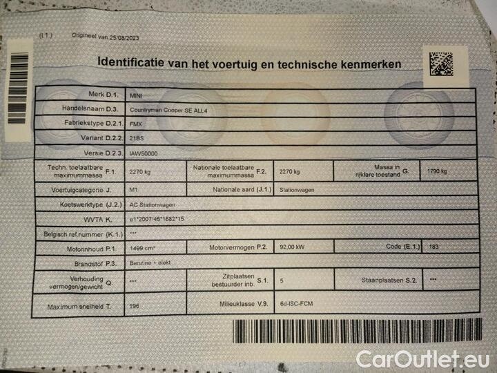 • Cooper S E ALL4 AT (PHEV) 162kW/220pk 5D/P Auto-6 - CO2 onvolledig