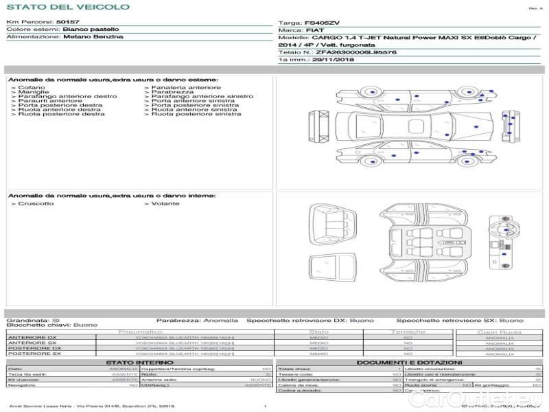 Fiat Doblo FIAT DOBLÒ CARGO / 2014 / 4P / VETT. FURGONATA CH1 LOUNGE 1.4 NAT. POWER 120CV E6D -
