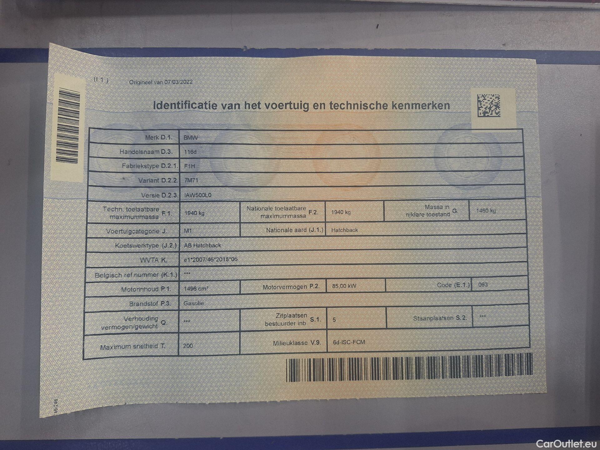 - BMW, 1-serie '19, BMW 1 Reeks Hatch 116dA (85 kW) 5d