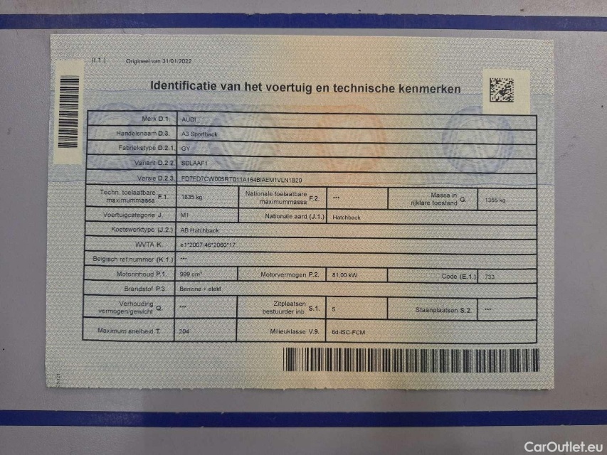 Audi A3 Audi, SB '20, Audi Sportback 1.0 30 TFSi 81kW S tron. S Line (annulatie Release, nieuwe plaat 2JEP584) - wagen staat op parking Arval