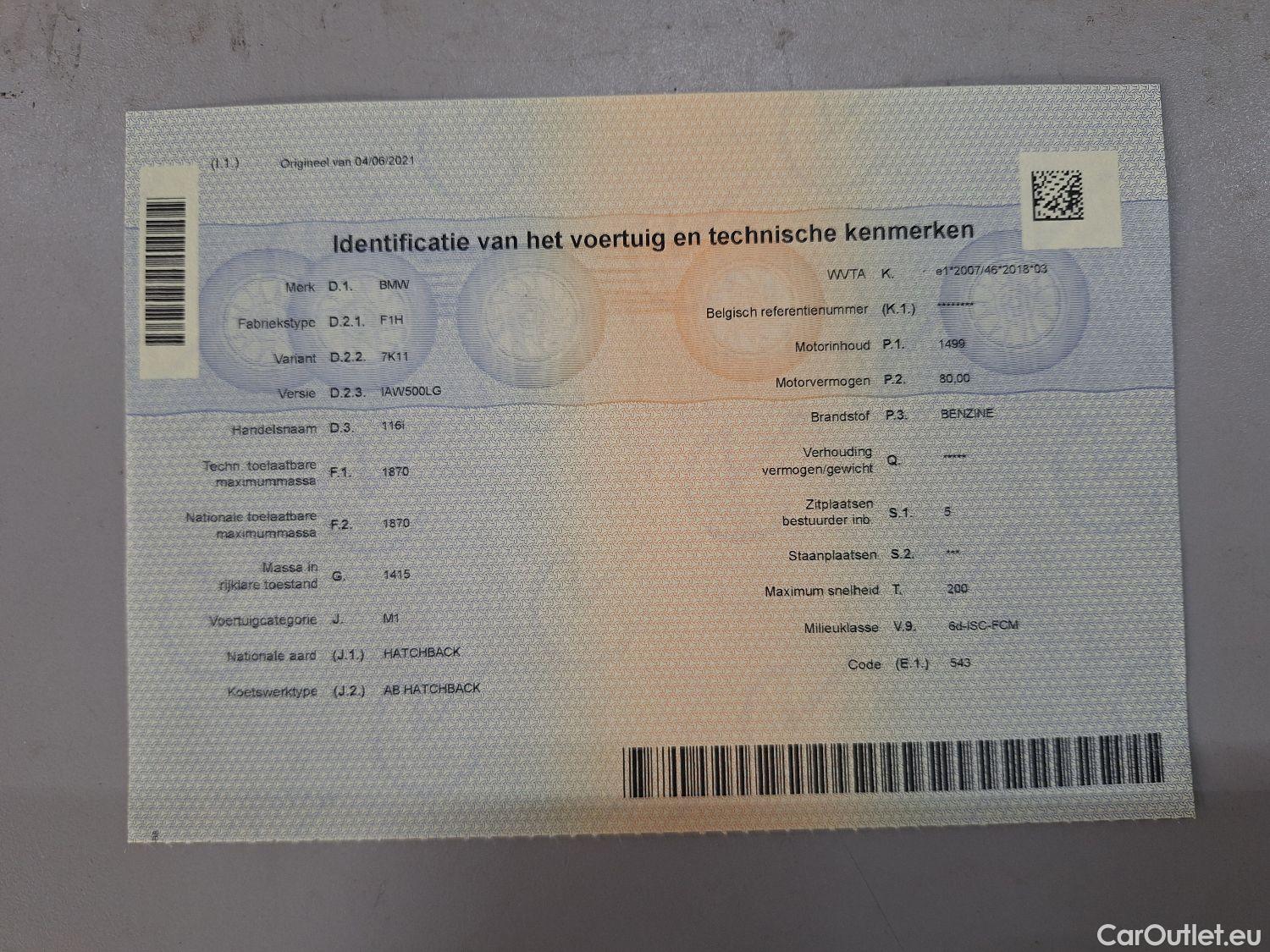 - BMW, 1-serie '19, BMW 1 Reeks Hatch 116iA (80 kW) 5d