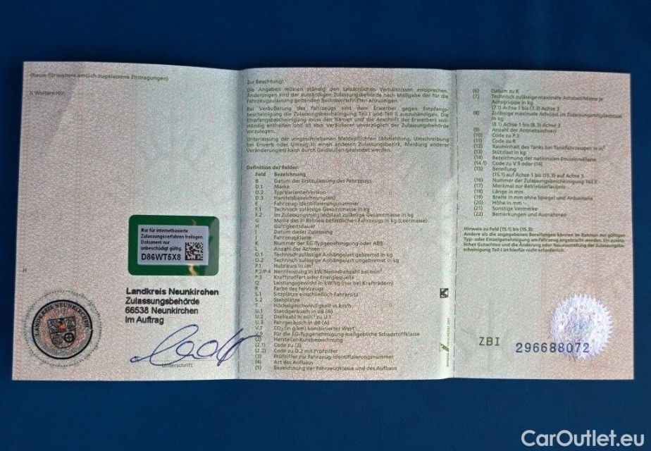 Achtung! Zum Fahrzeug sind uns Vorschäden in einer Gesamthöhe von ca. € 2455 netto gemeldet worden.Geschätzte Reparaturkosten von ca. 3085 € netto