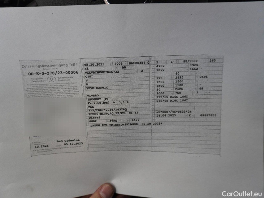 Opel Vivaro B Kasten/Combi Kasten L1H1 2 9t 1.6 turbo 92KW MT6 E6 -