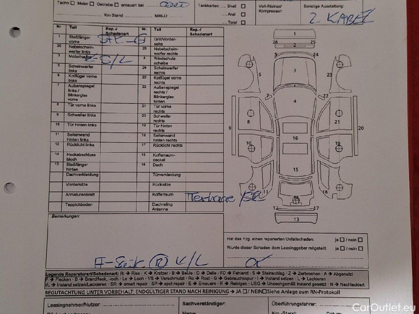 Achtung! Zum Fahrzeug sind uns Vorschäden in einer Gesamthöhe von ca. € 3586.58 netto gemeldet worden.Geschätzte Reparaturkosten von ca. 1270 € netto
