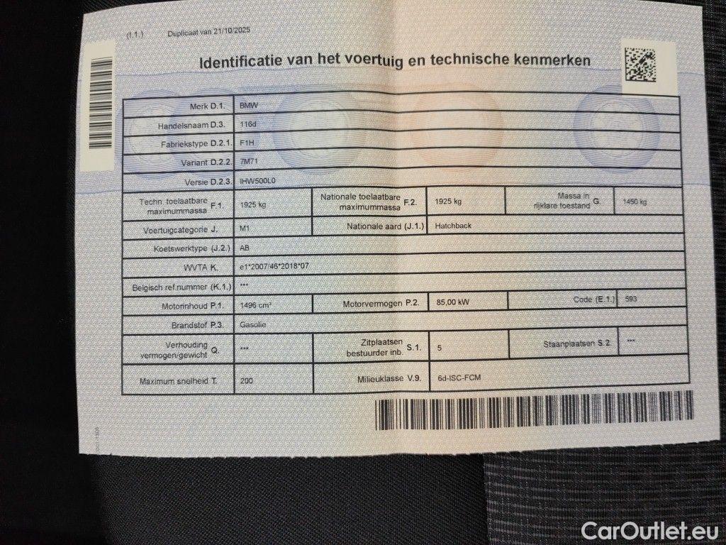 Bmw Serie 1 BMW, 1-serie '19, BMW 1 Reeks Hatch 116d (85 kW) 5d -