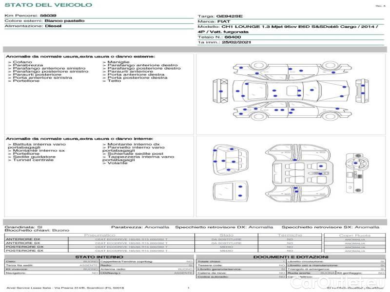 - FIAT DOBLÒ CARGO / 2014 / 4P / VETT. FURGONATA CH1 LOUNGE 1.3 MJET 95CV E6D SeS