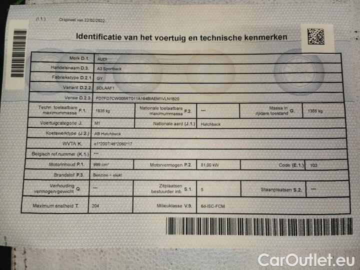 Audi A3 Sportback 1.0 30 TFSi S tronic Attraction BE (Mild Hybrid) 81kW/110pk 5D/P Auto-7 - CO2 indicatief
