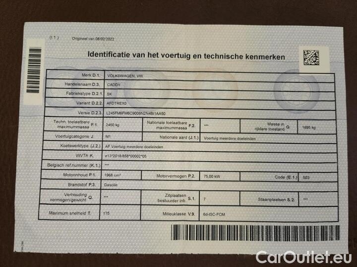 Volkswagen Caddy VOLKSWAGEN VAN DIESEL - 2021 2.0 TDi 102 5d -