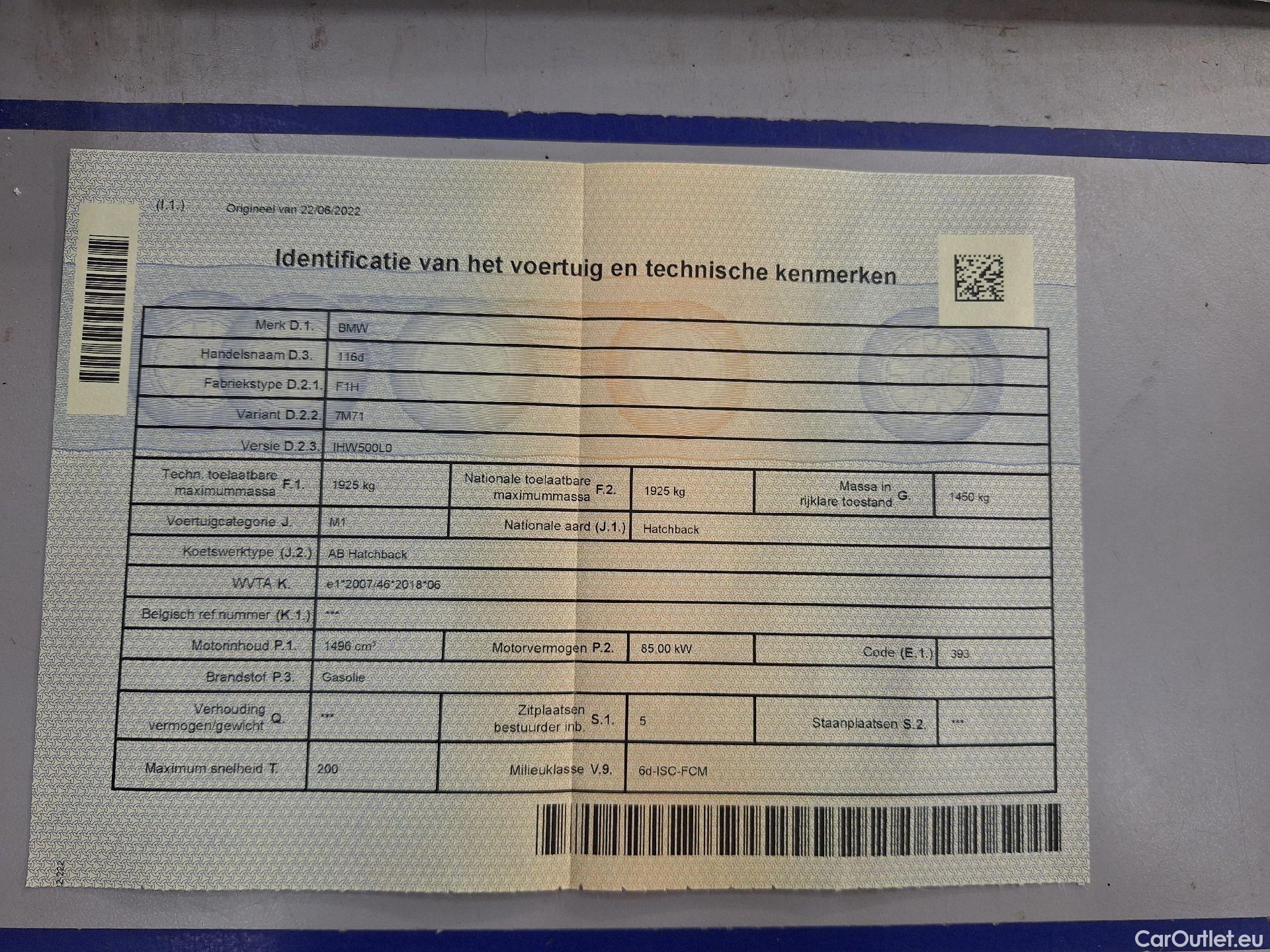 - BMW, 1-serie '19, BMW 1 Reeks Hatch 116d (85 kW) 5d
